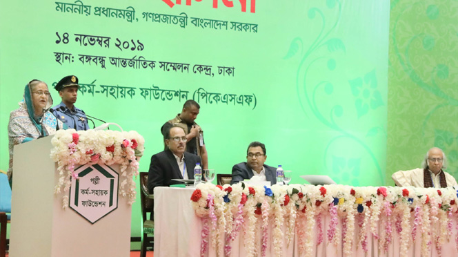 বৃহস্পতিবার (১৪ সেপ্টেম্বর) সকালে রাজধানীর বঙ্গবন্ধু আন্তর্জাতিক সম্মেলন কেন্দ্রে পল্লী কর্ম-সহায়ক ফাউন্ডেশন (পিকেএসএফ) আয়োজিত ‘উন্নয়ন মেলা ২০১৯’ উদ্বোধনকালে প্রধান অতিথির ভাষণে একথা বলেন প্রধানমন্ত্রী।